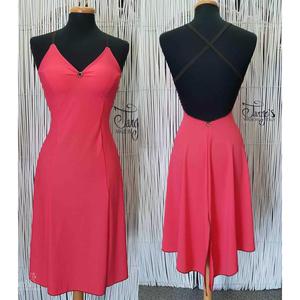 Abito realizzato in morbida maglina elasticizzata nera, scollo a barca e profonda scollatura posteriore. Piccola piega baciata sul finale. Abito elegante adatto per il ballo e per le uscite serali.
