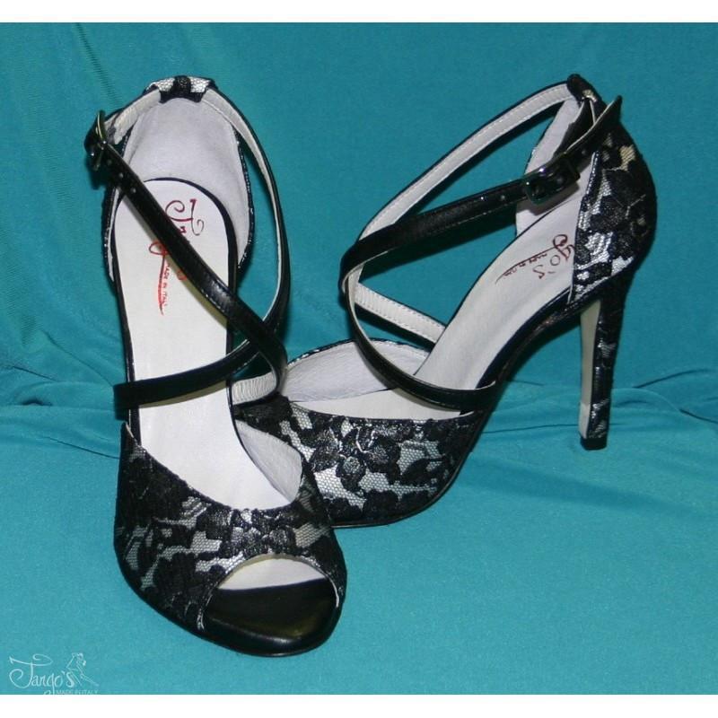 Il sandalo Michelle è una scarpa open toe, in questo modello realizzato in pizzo nero con fondo rbianco, lacci incrociati sulla caviglia e chiusura con fibbia. Suola in cuoio adatta per tutti i tipi di pavimento, cuscinetti di comfort interni e tacco fasciato 10,5 cm. Personalizzabile con altri colori, misure di tacco e suola in bufalo su richiesta e senza variazione di prezzo.