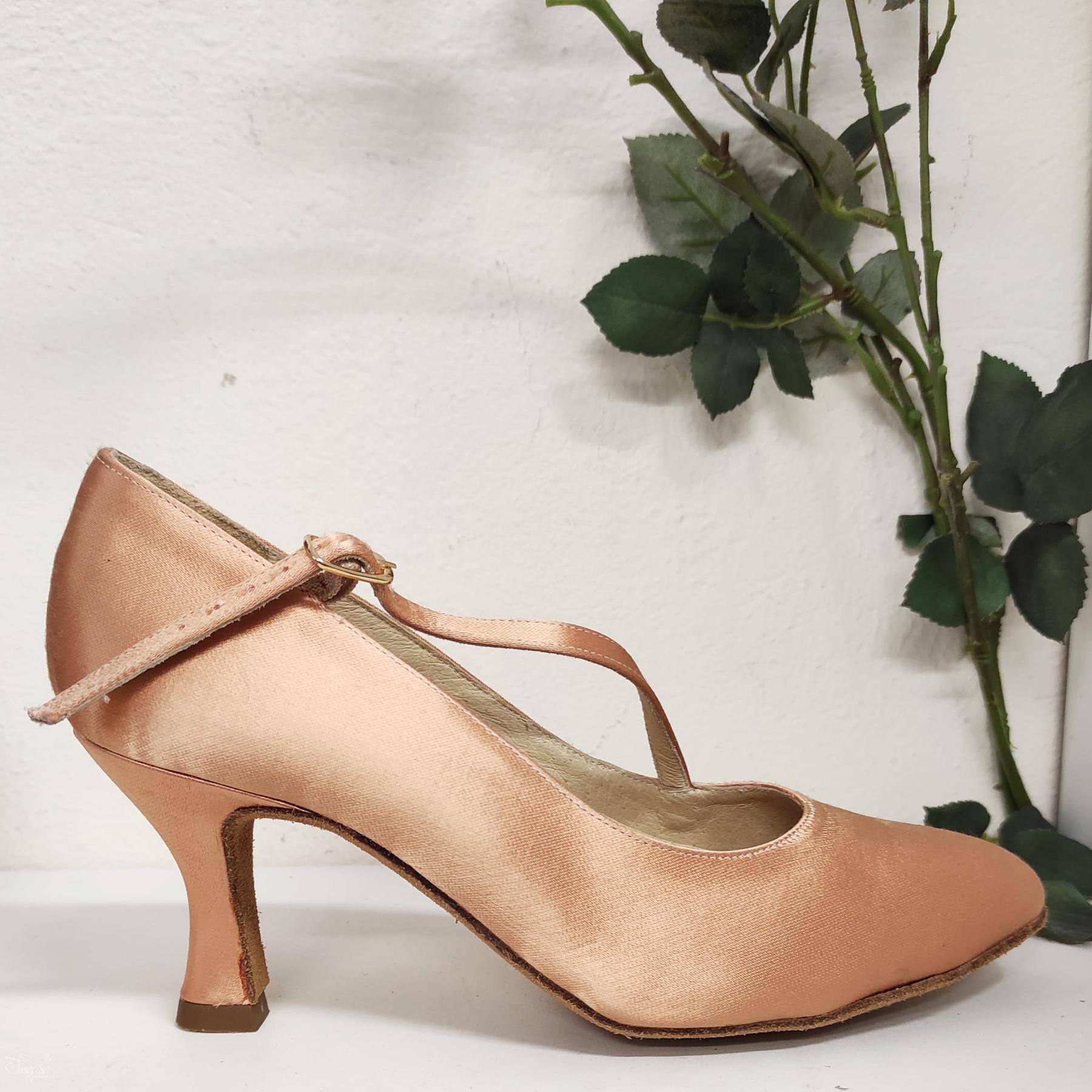 Scarpa da ballo ideale per balli standard, realizzata in raso lucido con laccio, suola in sugatto, tacco 7cm