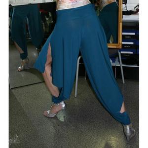 Particolari pantaloni dall' ampio spacco con ala che da movimento e poi va a stringere alla caviglia.