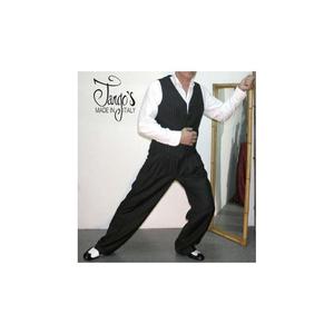 Il pantalone è a fondo nero gessato bianco, classico pantalone da Tango argentino, adatto a tutti i tipi di serate: dalla milonga settimanale alla serata di Gala.